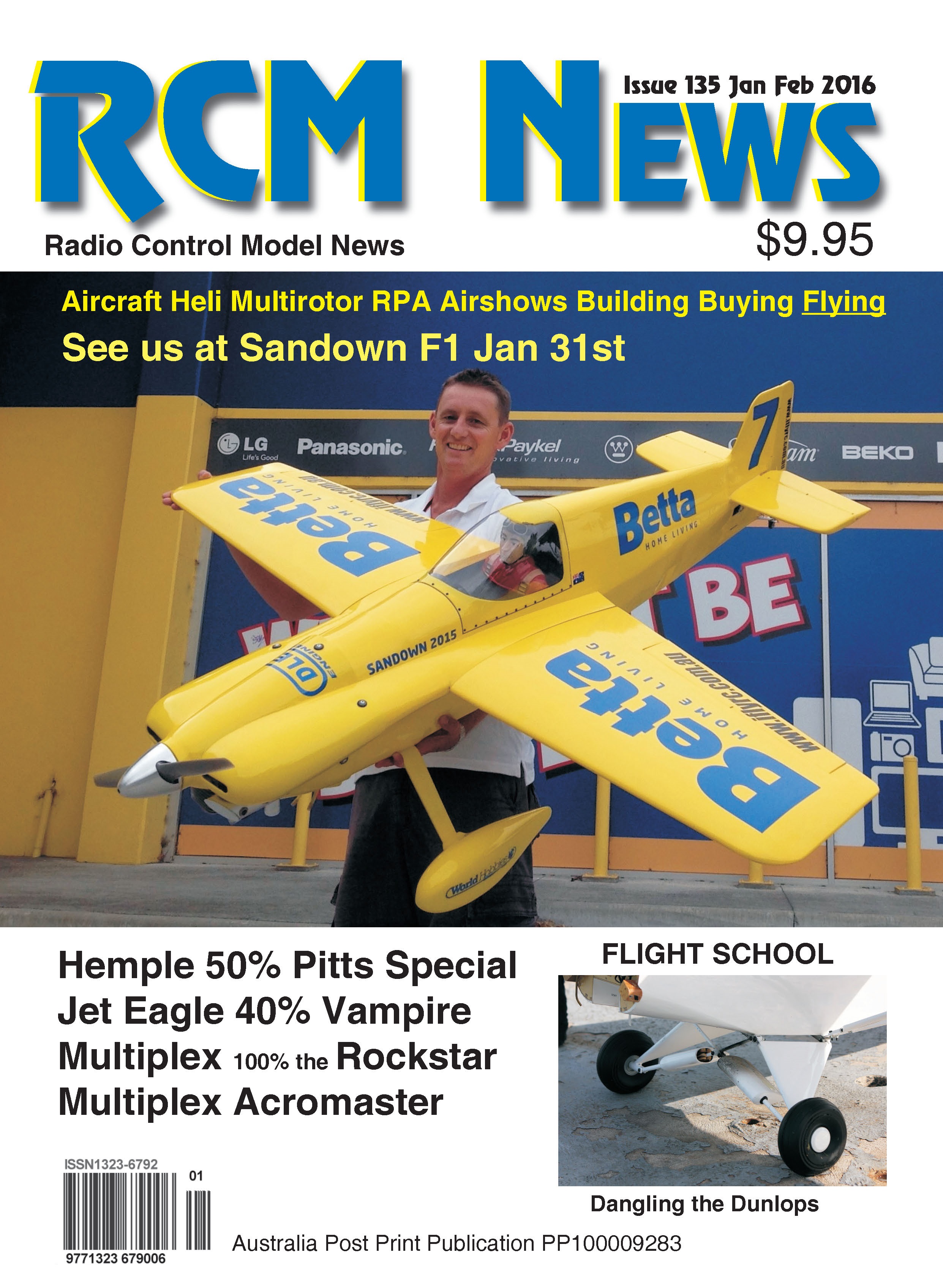 RCM News advertising covered the cost to fly out UK's Pete McDermott and his world champs F4C Sopwith Snipe. Categories included F4C, Builder, Team Scale and ARF